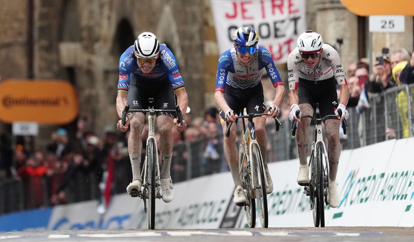 Jak se vyhnul padajícímu soupeři? „Nemám tušení,“ smál se Van der Poel v cíli Omloopu. Pluimers přišel o dva zuby