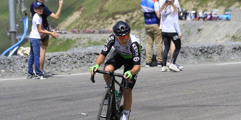 Lídr Antoine Huby (Cross Team Legendre) měl od začátku etapy, která startovala do 6,5 km kopce, potíže a zaostával.