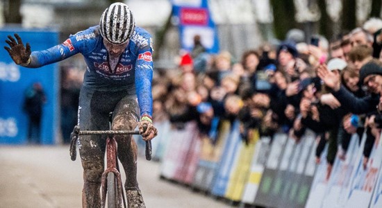 Gravelovou koridu cyklokrosařů v prašném Španělsku vyhrál ve spurtu Van der Poel před Van Aertem