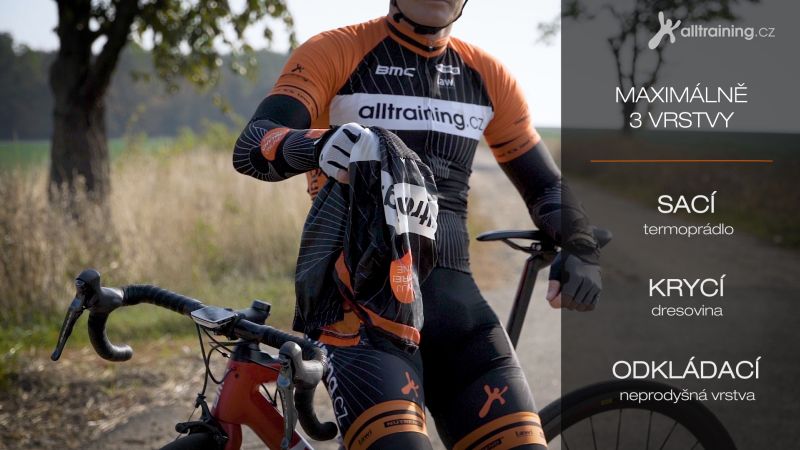 Umět se správně obléknout na kolo může vypadat jednoduše, ale snadné to není. Ze zkušenosti má řada cyklistů tendenci obléknout se spíše více a nefunkčně. Výsledkem je, že se organismus přehřívá, nadměrně se potíte a celkově se dostavuje pocit nepohodlí. Základem je proto mít na sobě co nejméně funkčního oblečení. Jezdec by měl mít na sobě vždycky maximálně tři vrstvy. Tou první je tzv. sací, tj. funkční termoprádlo, které udržuje stálé termoklima organismu a pot převádí do další vrstvy, tzv. krycí. Tu tvoří dres z tenkého a velmi prodyšného materiálu. V chladnějším počasí ze silnější dresoviny nebo softshelu či nowindu. Funkcí třetí a poslední vrstvy je udržet tělesné teplo, které se díky ní dá dobře regulovat. Většinou je to cyklistická vesta, pláštěnka či neprodyšná nowindová vrstva. Tohle oblečení se využívá doplňkově, když se potřebujete zahřát nebo se počasí náhle zhorší a třeba začne i pršet. Tuto třetí lehkou vrstvu můžeme odložit nebo si vestu rozepnout.