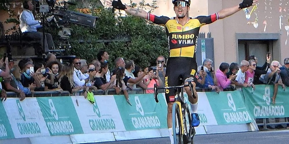 Takže do posledního stoupání se pustila pětice super špičkových vrchařů. Od mety posledního kilometru se začalo nastupovat. Nejprve Almeida, po něm Woods, pak Yates a 300 metrů před cílem Evenepoel. Poslední trumf ale vynesl 200 metrů před metou Primož Roglič! Už jen marně ho stíhal Almeida. Třetí příčka patří Woodsovi.
