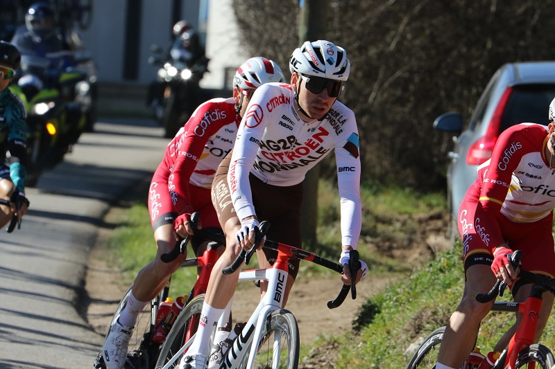 Společně s Vojtou jsme mohli v čelní skupině sledovat dresy Caja Rural, Sport Vlaanderen, Bingoal, B&B Hotels a St Michel. Znalcům mohl být nejpovědomější Kenny Molly v dresu Bingoal, který v roce 2015 začínal v AWT-GreenWay, českého development týmu Quick Stepu.