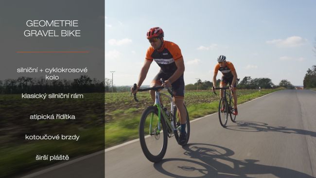 Gravel bike, takzvaný gravel, vznikl skloubením silničního a cyklokrosového kola. Jeho geometrie a zpřevodování splňuje kritéria jak pro jízdu po běžné silnici, štěrkových cestách i lesních cestičkách, tak pro jízdu v lehčím terénu.