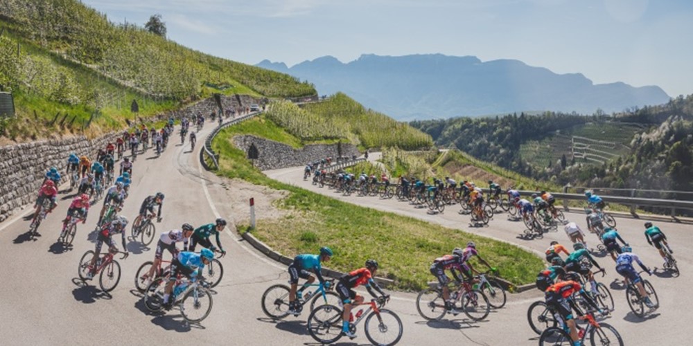 Letošní ročník začínal v Cles, což je "jablečné" centrum a místní krajina plná jabloňových sadů vytvářela kulisu první etapě Tour of the Alps.