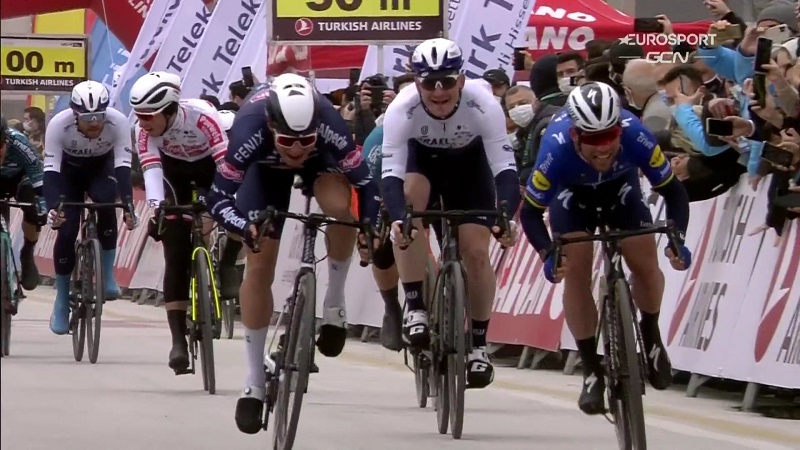 V posledních dvou kilometrech se nejlépe zorganizoval tým Israele, který se ocitl na čele v pěti lidech. Jenže 800 metrů před cílem před něj najeli tři borci Alpecinu a vypadalo to na jasnou záležitost, když vyslali do spurtu Jaspera Philipsena.