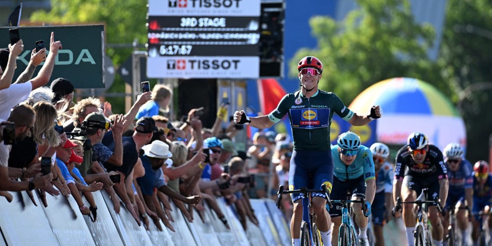 I když měl Jonathan Milan (Lidl - Trek) při nájezdu do stoupavého terénu potíže, dokázal se vždy vrátit a nyní tedy patřil k top favoritům předpokládaného hromadného sprintu. Zvláště když ho pilotoval Mads Pedersen. A spolu to zvládli na jedničku. Pedersen rozjel 500 metrů před cílem sprint a Milan vyhrál etapu. Tady už potřetí a Lidl - Trek počtvrté!