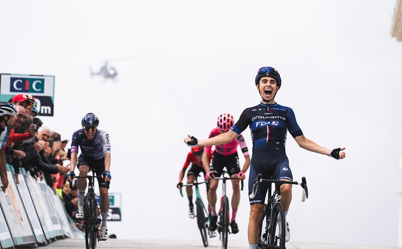 Mladý Francouz byl ve spurtu vrchařů, kteří se jako první vynořili z mlhy, nejlepší, o vteřinu před trojicí Michael Woods, Simon Carr a Cristián Rodríguez.