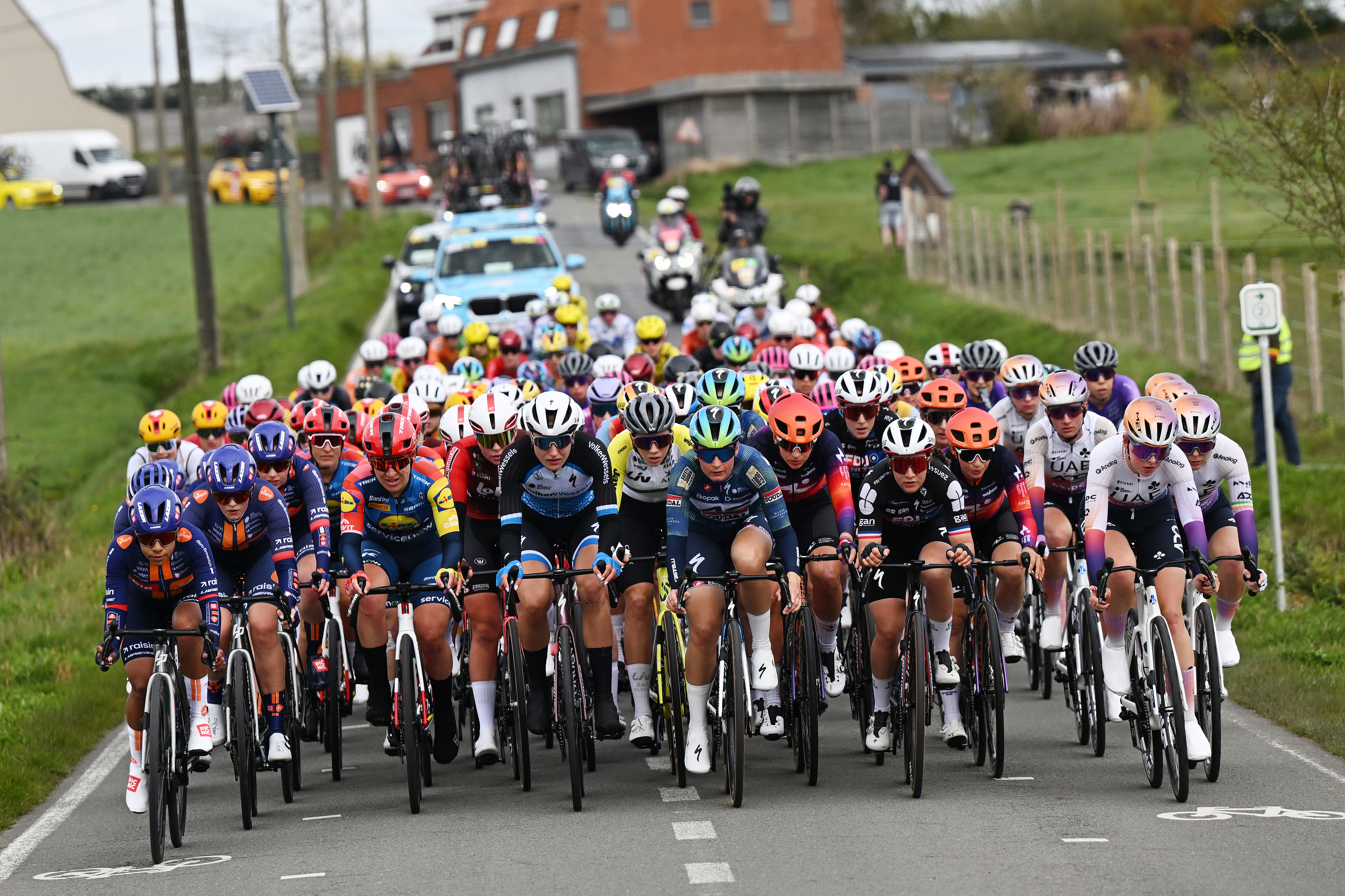 Peloton ale držely pod kontrolou především týmy sprinterek, zejména sestavy kolem Loreny Wiebes a Elisy Balsamo. Jakmile se závod přiblížil ke kopcovité části trati, náskok uprchlic rychle zmizel.