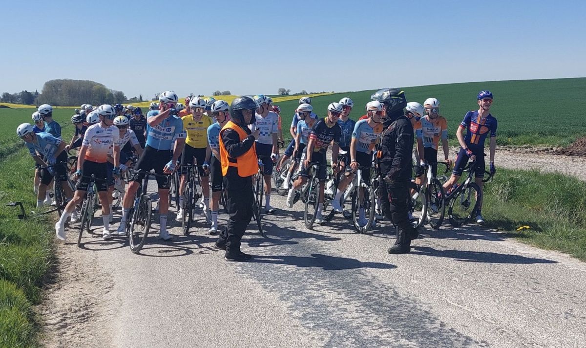 Pak došlo k hromadnému pádu, který rozdrobil peloton na několik skupin. V čele se ocitla pětice včetně Josefa Černého. Když měli 40 vteřin, byl závod kvůli následkům pádu zpětně neutralizován, takže po znovu zahájení odjel celý balík pohromadě.