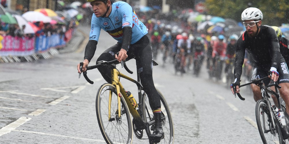 Nepřítomnost žádného Belgičana v prvním dlouhém úniku nebyla chybou, žádná silná země neměla vpředu své jezdce, problémy nastaly až na okruzích v Harrogate. Nejdříve přišla smůla v podobě pádu Philippa Gilberta. Zpět na kolo mu pomohl Remco Evenepoel, ale oba se při neúspěšném dojíždění pelotonu zničili a záhy odstoupili. Belgie tak přišla o jednoho lídra a zodpovědnost byla na Gregu Van Avermaetovi.