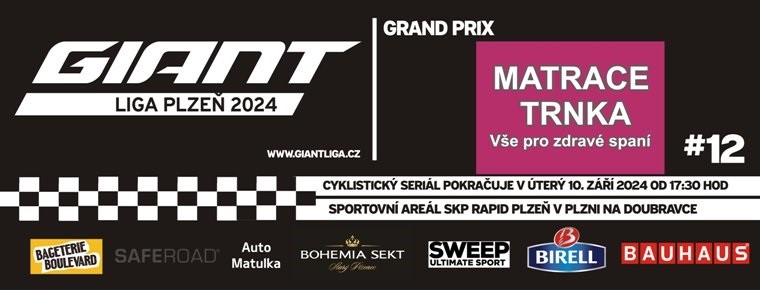 V úterý 10. září od 17:30 hod. tak pokračuje 12. díl GIANT LIGY PLZEŇ 2024, který je vypsán pro kategorie junioři, ženy, juniorky, muži elite, masters.