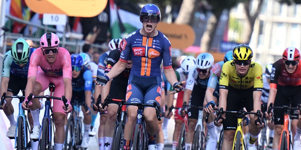 První italská etapa 108. ročníku Giro d'Italia nebyla příliš vzrušující, aspoň po většinu závodu. Do dlouhého úniku se vydal sám Francisco Muñoz (Polti VisitMalta) a strávil v něm přes 130 kilometrů. Vzhledem k tomu, že byl v úniku sám, se za ním v pelotonu spurtovalo na rychlostních prémiích, na speciální prémii Red Bull si to dokonce rozdali jezdci na celkové pořadí, 4 sekundy zde stáhl Isaac Del Toro (UAE Emirates-XRG) a 2 sekundy Primož Roglič (Red Bull-Bora-Hansgrohe).