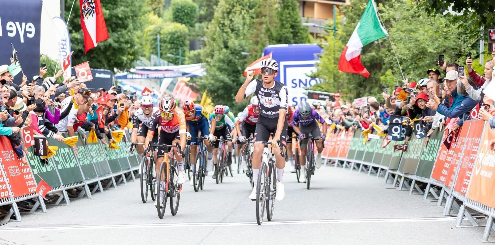 4 km před cílem bylo po úniku a mohlo se rozehrát finále. Jakmile se uhnulo směr lyžařské středisko Alpendorf, začalo se útočit. Rychle se na čele vytvořila zhruba 50členná skupina, v níž bylo možno rozeznat stále vícero dresů ATT Investments. Na kilometru akceleroval Esteban Chaves (EF Education - EasyPost), na což okamžitě zareagoval Alessandro Covi (UAE Emirates - XRG) a přejel ho jak mercedes trabanta.